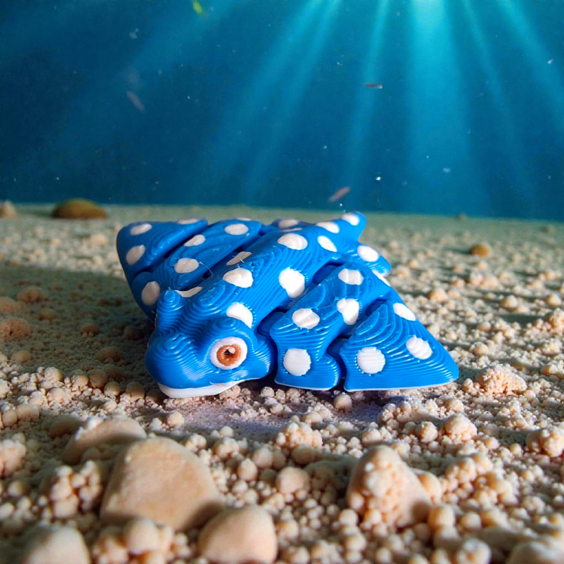 Dieser elegante Rochen bringt Ruhe, Konzentration und ein Stück Unterwasserwelt in den Alltag. Mit seiner kompakten Größe von ca. 5 cm passt er perfekt in kleine Hände, Taschen oder Schulranzen – immer dabei, wenn ein Moment der Entspannung gebraucht wird.